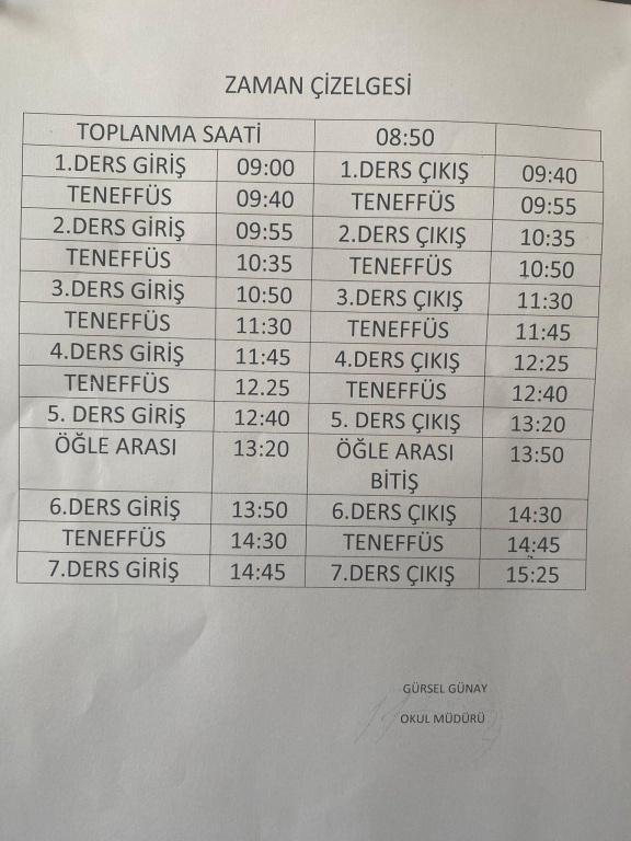 Okulumuza ait 2025-2026 Eğitim-Öğretim yılı zaman çizelgesi..